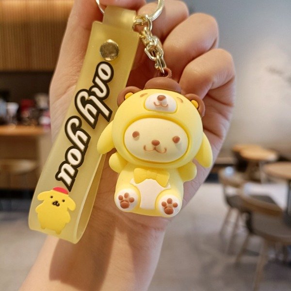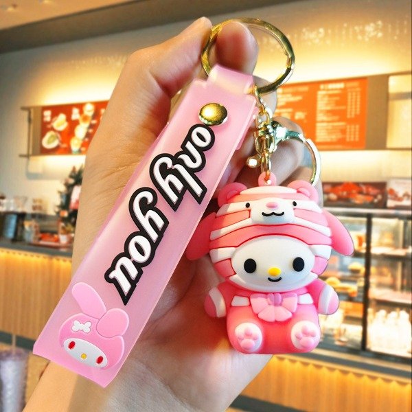 Incluye gancho metálico dorado, anillo para llaves y pulsera de silicona.