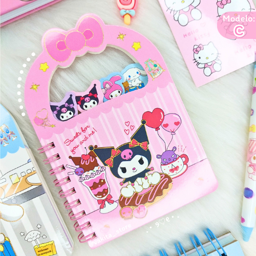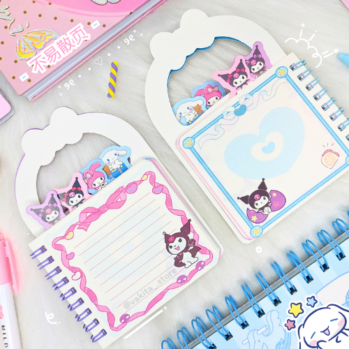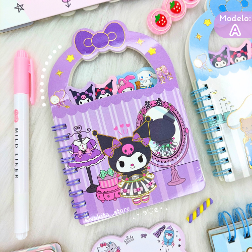 Este práctico cuaderno anillado cuenta con separadores y adorables páginas ilustradas, todo en un tamaño compacto de 10x15 cm.🌸